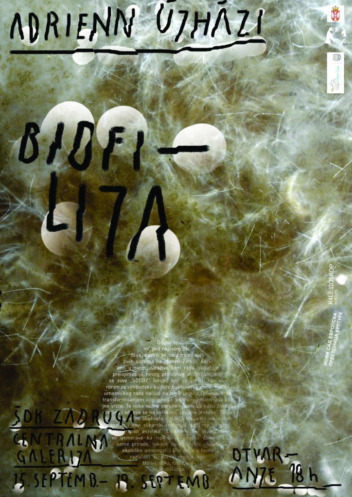 Odabir teme pod nazivom Biofilija, bazira se na odnosu svih živih sistema na planeti Zemlji. Adrienn u svom istraživačkom radu uključuje preispitivanje novog prirodnog materijala, koji se zove „SCOBY” (skobi) koji se koristi kao akronim za simbiotsku kulturu bakterija i kvasca. Tokom umetničkog rada nailazi na nova likovna rešenja, transformisanjem uzgojenog i prirodnog materijala biljne vrste. Serija Biofilija u većini obuhvata fokus na nekonvencionalan i novi slikarski materijal, čime se promoviše nova estetika. Adrienn svoje stvaralaštvo usmerava ka ispitivanju odnosa čoveka i same prirode, obuhvatajući oblasti ekološke umetnosti i Bio art-a u formi različitih vizuelnih medija kao što su: slika, crtež, video, instalacija.